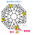 南南東と言うのは方位を16等分したときの角度であり、恵方は24等分したときの方角。ということで恵方と南南東は7.5°ずれている。